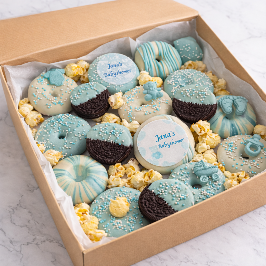 Vier de komst van jullie kleintje met deze onweerstaanbare Waffooz-box! Boordevol heerlijke mini waffooz rings, gegarneerd met echte Belgische chocolade en helemaal gepersonaliseerd voor de speciale gelegenheid.