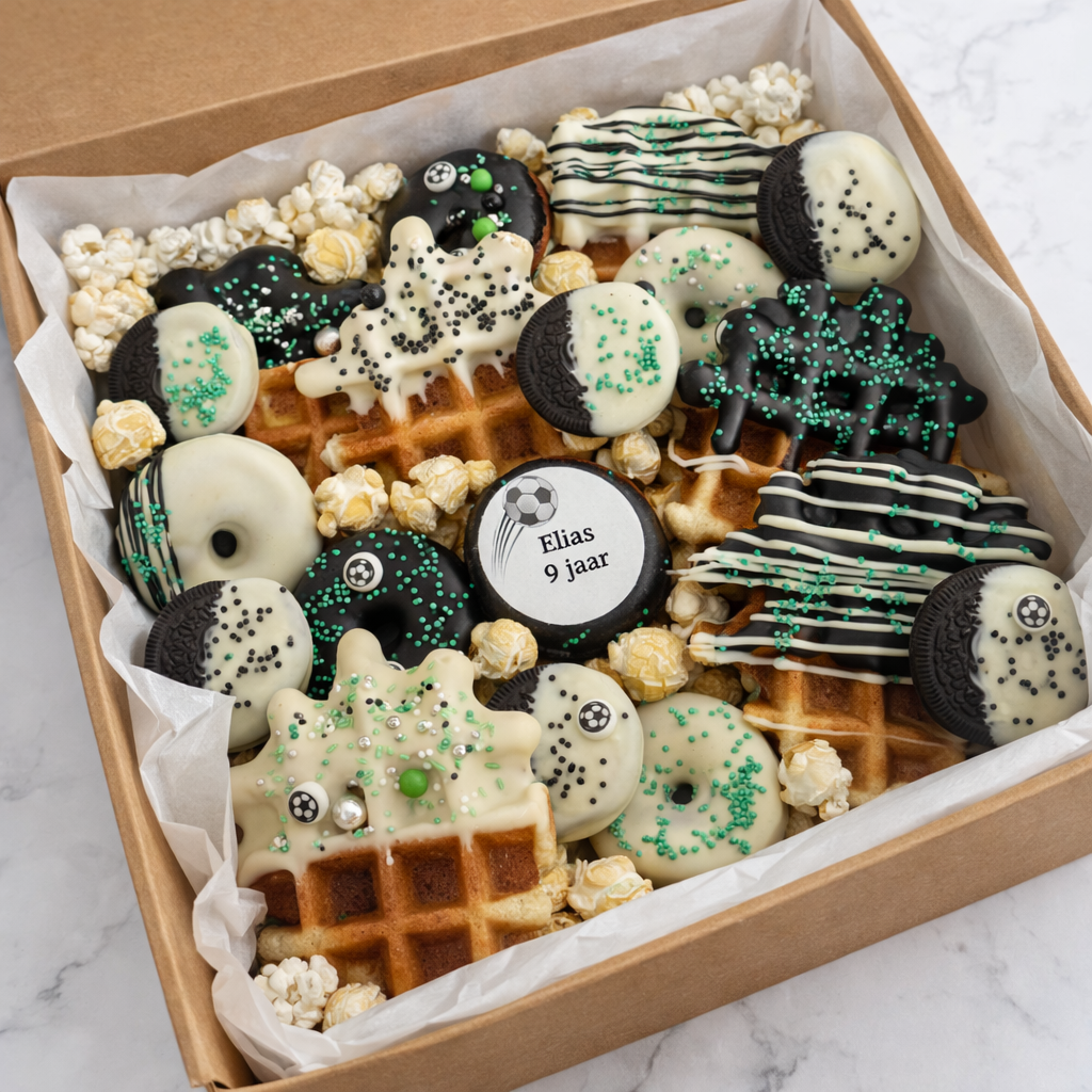 Scoor het lekkerste doelpunt van het jaar! Is er een jarige voetbalfan in huis? Met onze Soccer Star Box haal je de winst direct naar de feesttafel. Helemaal in de stijl van het veld.