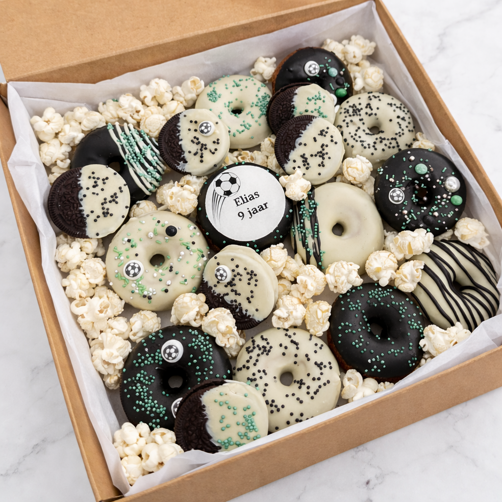 Scoor het lekkerste doelpunt van het jaar! Is er een jarige voetbalfan in huis? Met onze Soccer Star Box haal je de winst direct naar de feesttafel. Helemaal in de stijl van het veld.