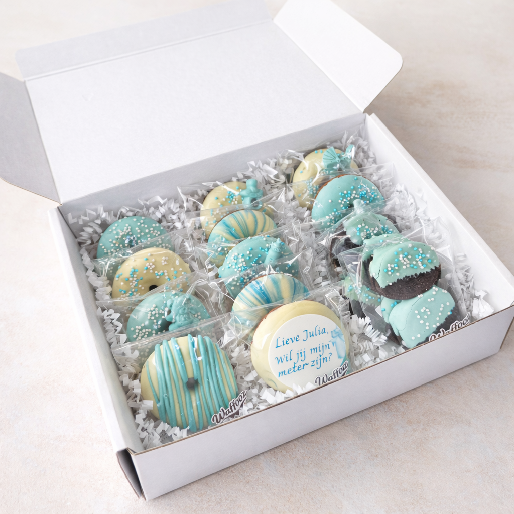 Verras jouw toekomstige meter of peter met deze bijzondere “Wil je mijn meter/peter zijn?” Verzendbox. Een speciaal klein wondertje vraagt iets groots… 💖